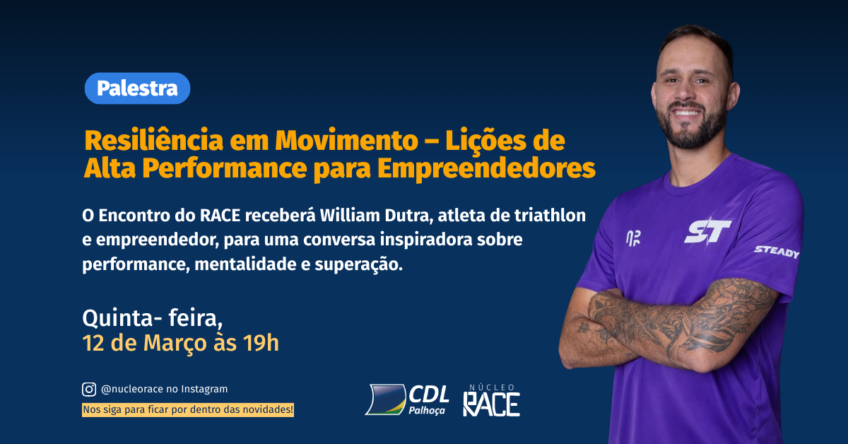O Núcleo RACE da CDL Palhoça promove mais um encontro voltado ao fortalecimento do empreendedor local, com a palestra “Resiliência em Movimento – Lições de Alta Performance para Empreendedores”. Empreender exige preparo emocional, disciplina e capacidade de seguir em frente mesmo diante de desafios. Nesta edição, o RACE convida os participantes a refletirem sobre como […]