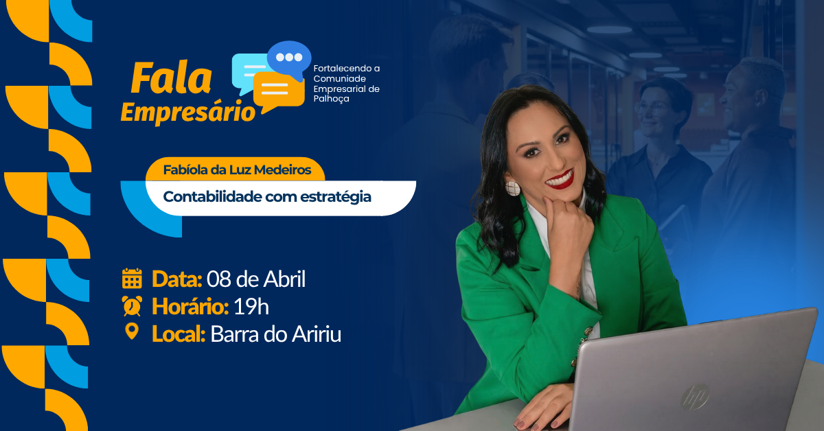 A CDL Palhoça, por meio do projeto Fala Empresário Barra do Aririú, promove o workshop “Domine seus Números: MEI, IR e Fluxo de Caixa”, um encontro voltado para empresários e empreendedores que desejam organizar melhor a gestão financeira do seu negócio e tomar decisões com mais segurança.