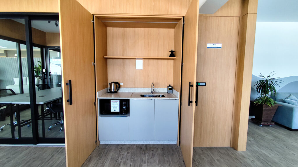 A copa compartilhada da CDL Palhoça oferece toda a infraestrutura necessária para conforto e praticidade, incluindo micro-ondas, chaleira elétrica, bebedor, copos de água descartáveis, coador (não possui filtro) e frigobar, com uso incluso para todos os usuários dos espaços.